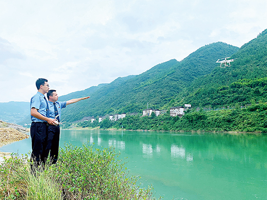 檢察院工作人員正在用無人機(jī)開展河道巡查。 縣檢察院供圖