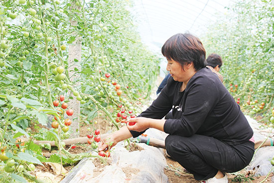 在番茄大棚內(nèi),村民們穿梭其中,忙著采摘、裝箱,送往周邊市場。