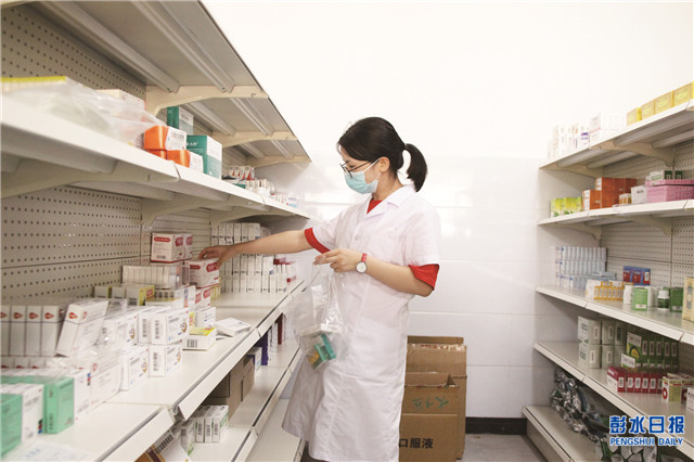 中國彭水網(wǎng)(融媒體記者 劉 蕊 攝影)近年來,彭水加快鄉(xiāng)鎮(zhèn)衛(wèi)生院基礎(chǔ)醫(yī)療設(shè)施建設(shè),改善廣大群眾看病就醫(yī)條件,進(jìn)一步提高醫(yī)療服務(wù)水平,加強(qiáng)醫(yī)療服務(wù)功能,改善醫(yī)療服務(wù)環(huán)境,讓群眾看得上病、看得起病、看得好病。圖為9月10日,大埡鄉(xiāng)衛(wèi)生院的護(hù)士在藥房為病人配藥。
