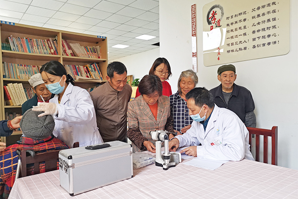 中國(guó)彭水網(wǎng)(通訊員 庹 玲 攝影)為關(guān)愛老年人視力健康,辦好民生實(shí)事,4月28日,新田鎮(zhèn)聯(lián)合縣人民醫(yī)院在馬峰社區(qū)開展白內(nèi)障義診活動(dòng)。圖為醫(yī)生正在為社區(qū)群眾進(jìn)行白內(nèi)障檢查。
