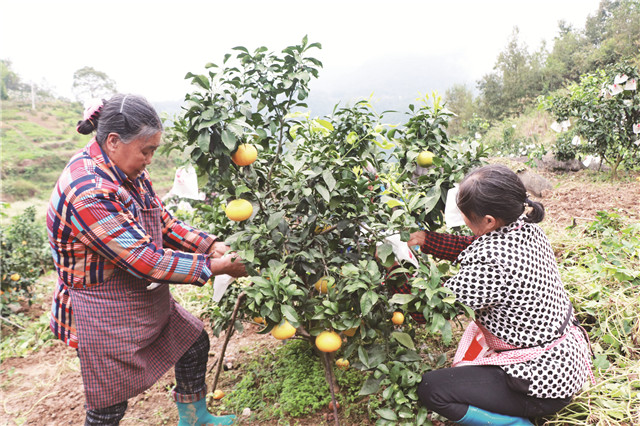 重慶彭水網(wǎng)(融媒體記者 楊春燕 攝影)近年來,高谷鎮(zhèn)龐溪村合理利用資源,積極流轉(zhuǎn)土地,憑借良好的地理位置與氣候條件,大力發(fā)展特色產(chǎn)業(yè),帶動(dòng)群眾增收致富。圖為10月19日,龐溪村十余名村民正在種植基地給即將成熟的愛媛套袋。