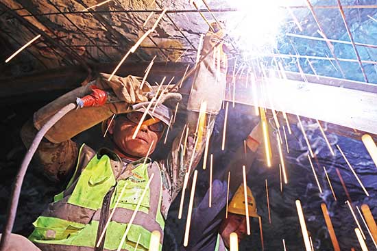 在彭水隧道出口段,記者看到,除渣車輛來回穿梭,工人們正在進(jìn)行掌子面施工作業(yè),現(xiàn)場(chǎng)一派熱火朝天景象。中鐵十二局集團(tuán)有限公司巴彭路14標(biāo)項(xiàng)目副經(jīng)理杜雪鋒說,彭水隧道全長(zhǎng)11公里,參與隧道建設(shè)的工人全部到崗到位。目前,隧道左洞推進(jìn)了1.4公里,右洞推進(jìn)了1.5公里,今年計(jì)劃是完成左右洞單洞各3公里左右。