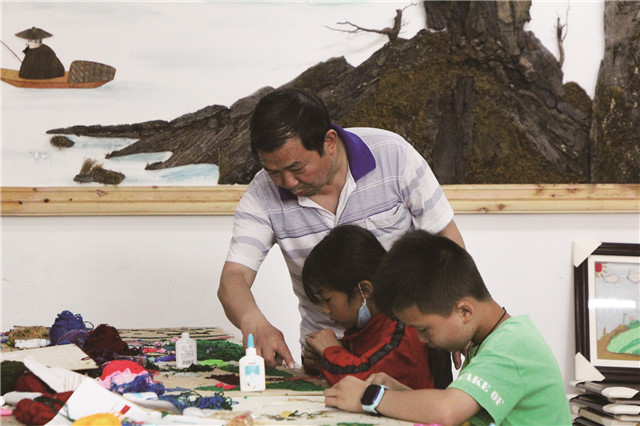 學校有特色、學生有特長。學校不只有詩經文化,為了豐富校園師生的文化生活,使學生個性特長得到充分發(fā)揮,學生們以廢舊物品及毛線為主的粘貼畫制作美術手工課更是一絕。