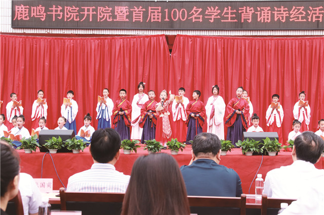 “雙減背景下,學生有了更多時間學習中國傳統(tǒng)文化?!甭锅Q鄉(xiāng)中心校校長肖山表示,就如何唱響 “耕讀鹿鳴·牧人遠鄉(xiāng)”這張明片,我們選擇了從“讀”破題入手,建設鹿鳴書院,讓鹿鳴鄉(xiāng)全體學生及家長積極參與讀詩經、誦詩經、背詩經、唱詩經、演詩經、寫詩經活動中來,逐漸讓鄉(xiāng)親們也來讀詩經,打造“鹿鳴詩經之鄉(xiāng)”。