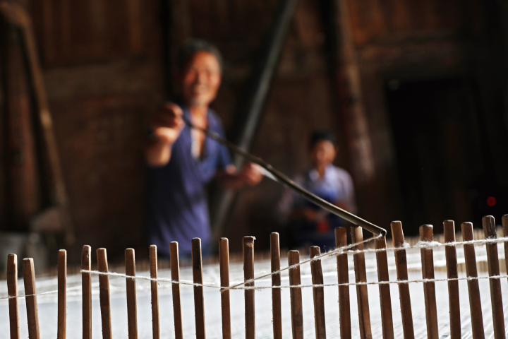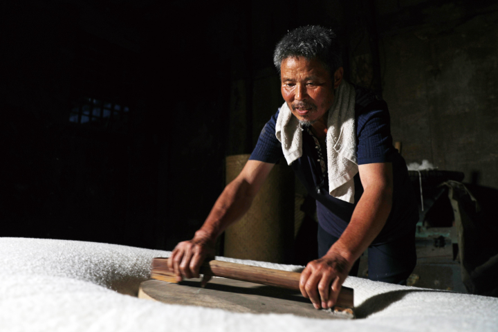 謝剛?cè)A從16歲學(xué)藝至今,52年來,從來沒有間斷過彈棉花這門手藝。以前,在農(nóng)忙時節(jié),他在家忙碌著農(nóng)業(yè)生產(chǎn),每當(dāng)農(nóng)閑時節(jié),他都會背上彈棉花的“裝備”走村串戶,為有需要的村民彈棉絮。如今,隨著年紀的增大,謝剛?cè)A走村入戶少了,他在喬梓鄉(xiāng)集鎮(zhèn)上開了一個棉絮加工坊,為有需要的村民提供便利。
