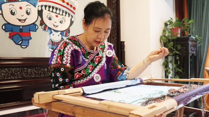 “2011年我們成立了以‘彭水苗繡’非遺文化為主的榮玉苗家刺繡工藝品開發(fā)有限公司,主要開展‘彭水苗繡’技藝培訓(xùn),想通過這種方式推動(dòng)非遺文化苗繡的推廣和傳承?!崩罱B玉說。