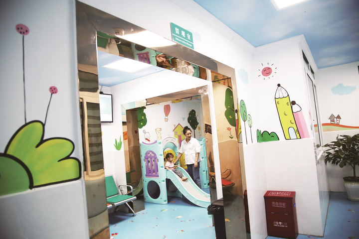 記者注意到,整個(gè)接種區(qū)內(nèi),布滿卡通圖案的墻壁、舒適美觀的沙發(fā)凳、留觀區(qū)內(nèi)的兒童滑梯,眼前的場(chǎng)景讓人仿佛置身兒童樂(lè)園。不少剛接種完的孩子在家長(zhǎng)的陪同下正在留觀區(qū)玩耍。