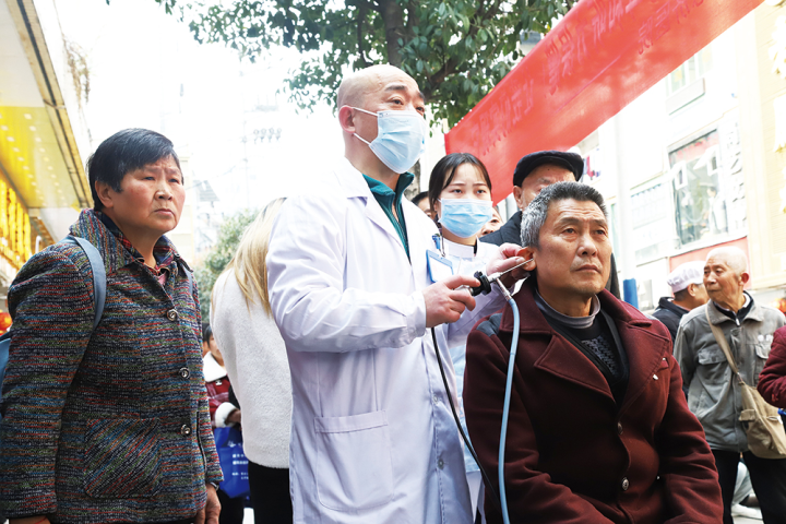 重慶彭水網(wǎng)(作 者:謝云芳)3月3日,縣殘聯(lián)聯(lián)合縣衛(wèi)健委、縣醫(yī)院、德濟(jì)醫(yī)院、兒童康復(fù)機(jī)構(gòu)在十字街廣場(chǎng)開展第24次全國(guó)“愛耳日”宣傳教育活動(dòng),醫(yī)護(hù)人員現(xiàn)場(chǎng)為市民免費(fèi)義診,為他們進(jìn)行聽力篩查、聽力功能康復(fù)指導(dǎo)等服務(wù),并向他們?cè)敿?xì)講解耳科保健技巧、健康用耳習(xí)慣等知識(shí)。圖為醫(yī)護(hù)人員正在為市民做聽力檢查。