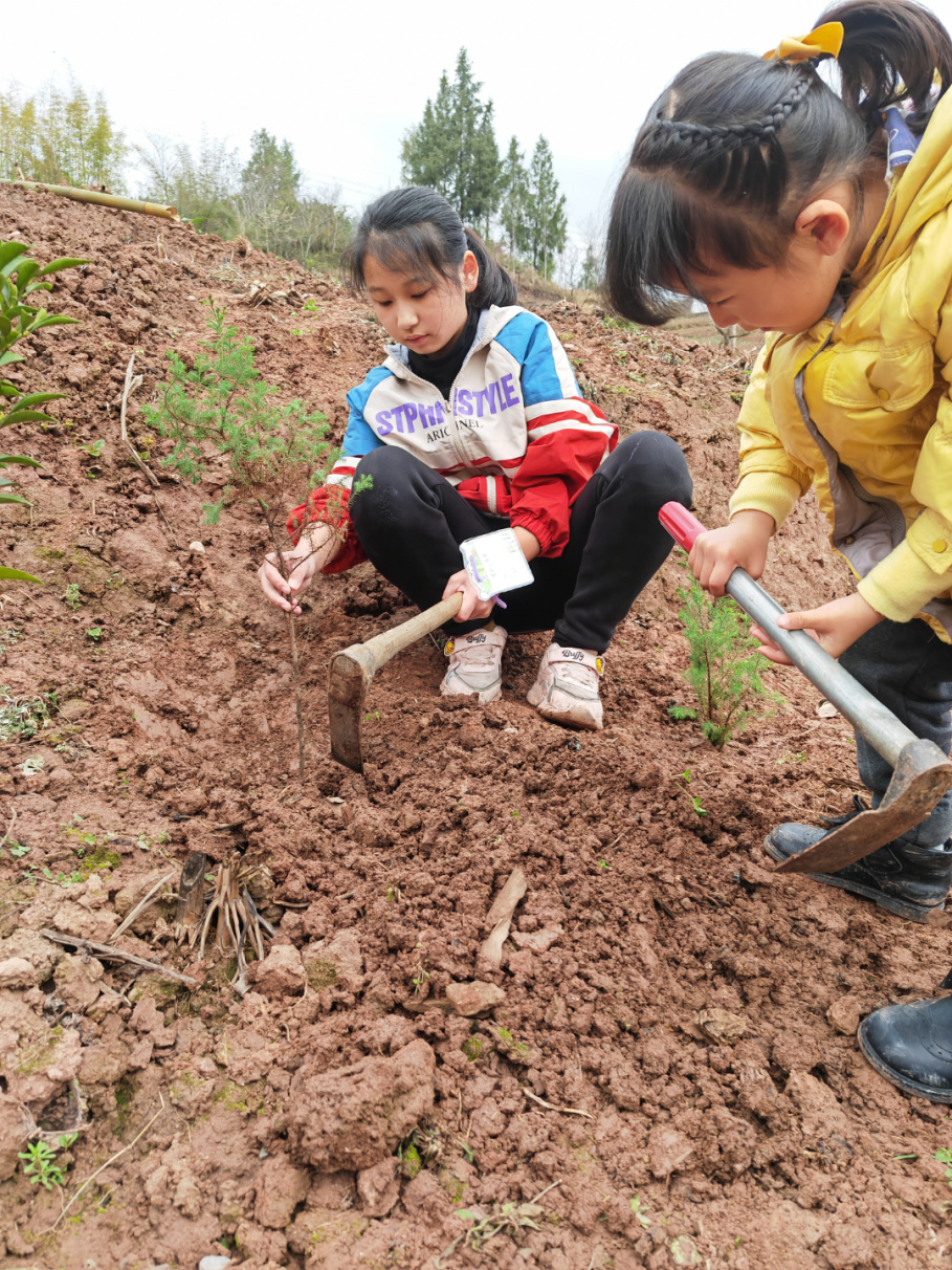 周末陽光正好,彭三小的孩子給小樹苗“安家”