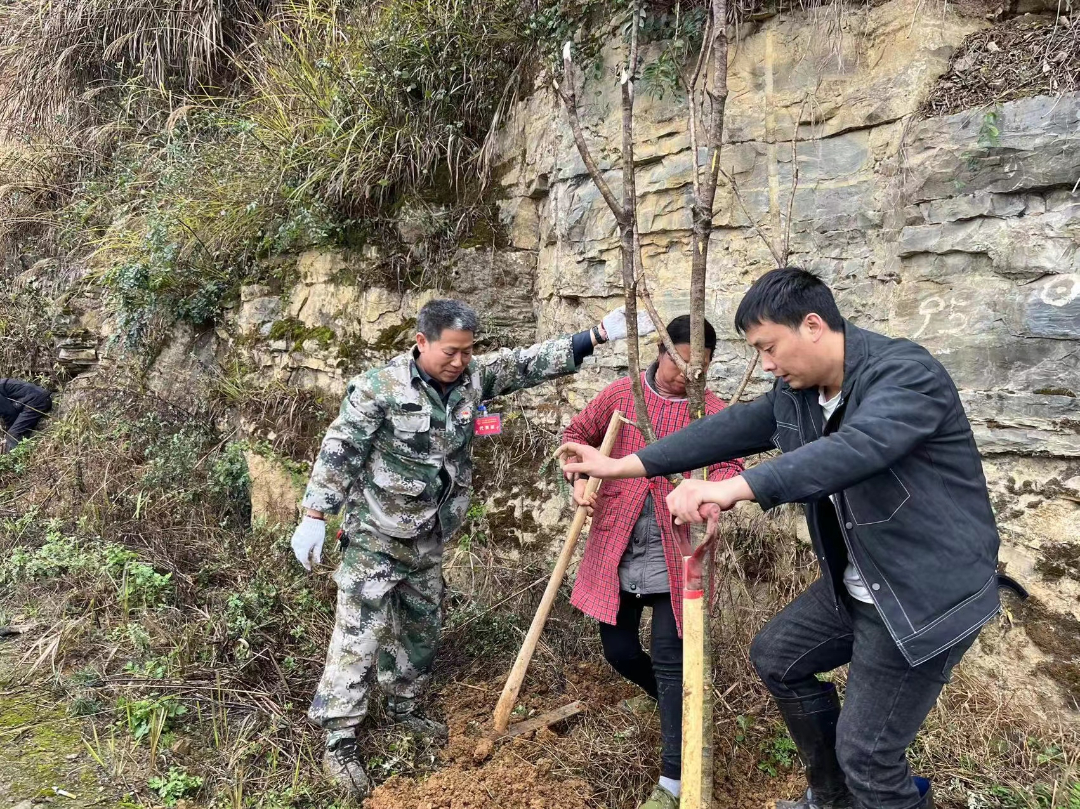 3月9日上午,大埡鄉(xiāng)政府全體干部職工、人大代表、護林員、志愿者等在冬瓜村塘口開展義務植樹活動。大家通力協(xié)作,共種下桃樹300余顆,為大埡增添了一道生機盎然的風景線,來年春風花開日,山桃紅花滿上頭,定是一副春回大地好光景。