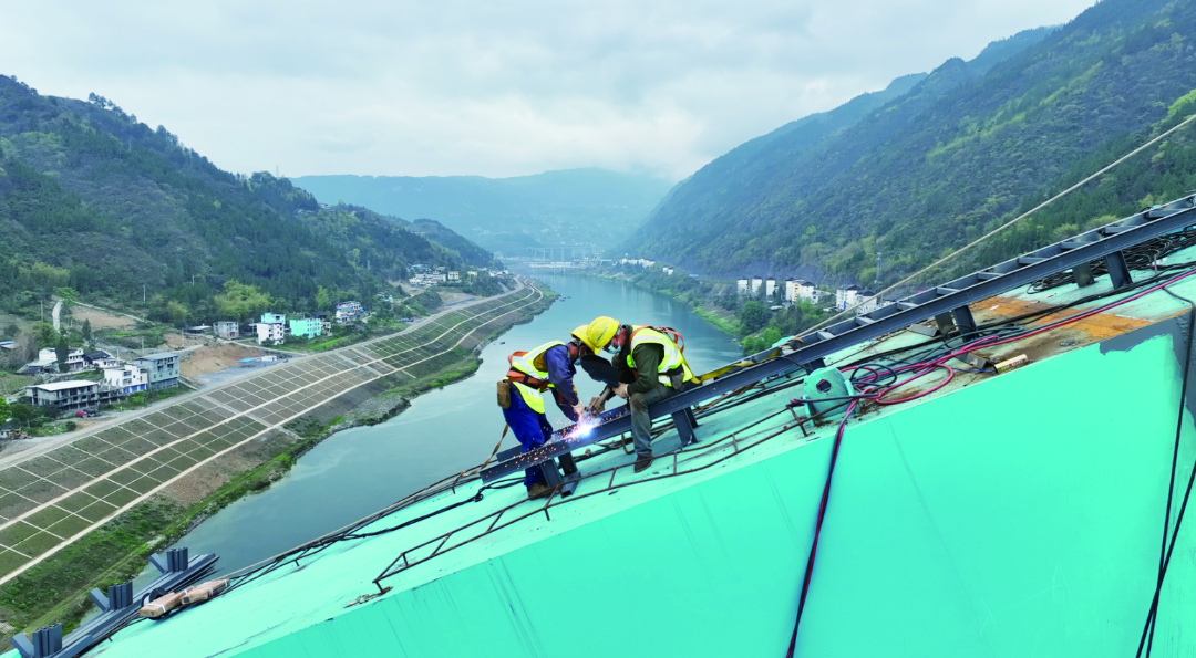 在清水坪烏江特大橋,工人正在抓緊施工。