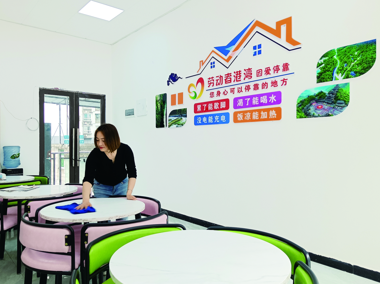重慶彭水網(wǎng)(記者 唐源)近年來(lái),我縣依托垃圾站、公廁等其他辦公場(chǎng)所,重點(diǎn)在勞動(dòng)者集中的車(chē)站、居民聚集區(qū)等重要點(diǎn)位,結(jié)合實(shí)際推動(dòng)“勞動(dòng)者港灣”建設(shè),并在其內(nèi)配備冰箱、燒水壺、暖水瓶、桌椅、儲(chǔ)物柜等設(shè)施,讓勞動(dòng)者累了能歇腳、渴了能喝水、飯涼能加熱,讓“勞動(dòng)者港灣”像家一樣溫馨,讓勞動(dòng)者真正有了“家”。圖為4月19日,在紹慶街道的“勞動(dòng)者港灣”,工作人員正在打掃衛(wèi)生。