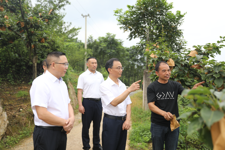石強(qiáng)來到石盤鄉(xiāng)石新村天坪山生態(tài)農(nóng)莊、香樹村臍橙生態(tài)園,邊走邊聽邊看,與相關(guān)負(fù)責(zé)人親切交流,詳細(xì)了解生產(chǎn)規(guī)模、經(jīng)營(yíng)管理、產(chǎn)值效益、與農(nóng)戶利益聯(lián)結(jié)機(jī)制等情況。天坪山生態(tài)農(nóng)莊采用“公司+基地+農(nóng)戶”的發(fā)展模式,發(fā)展生態(tài)梨園200余畝,漆樹150余畝,套種蔬菜100余畝,存欄山羊150余頭,梨園林下養(yǎng)殖蜜蜂100余箱,帶動(dòng)周邊農(nóng)戶實(shí)現(xiàn)增收,每年吸納300余人農(nóng)村閑置勞動(dòng)力就業(yè)。臍橙生態(tài)園采取“村集體+農(nóng)戶”的發(fā)展模式,發(fā)展臍橙300余畝,項(xiàng)目見效后可帶動(dòng)村集體經(jīng)濟(jì)每年增收30萬元。石強(qiáng)對(duì)此很是肯定,他說,產(chǎn)業(yè)發(fā)展離不開能人帶動(dòng),本土能人要有技術(shù)、有實(shí)力、有帶動(dòng)性,充分發(fā)揮大戶的作用,培育一批致富能人,帶動(dòng)周圍老百姓增收。要發(fā)展立體農(nóng)業(yè),推動(dòng)林下種植、稻田養(yǎng)殖等,增加復(fù)種指數(shù),提高畝均效益,不斷深化利益聯(lián)結(jié)機(jī)制,讓老百姓分享到更多產(chǎn)業(yè)發(fā)展帶來的收益。