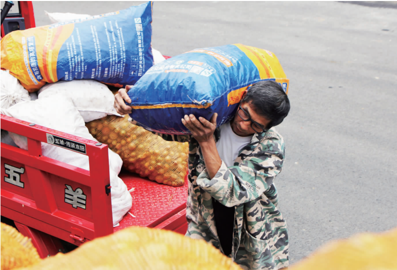 村民將采摘的油茶果裝車。 (鐘 建 攝影)