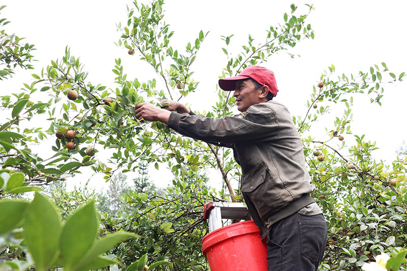 “從目前村民采摘的情況來看,畝產(chǎn)均在1200斤左右,主要是組織收購商上門收購,鮮果是1塊3一斤,這樣算來,我們村今年單是油茶這項(xiàng)收入就能達(dá)到460萬左右。”善感鄉(xiāng)石盆村產(chǎn)業(yè)村長王濤介紹,油茶果真正給村民們帶來了實(shí)實(shí)在在的效益,讓他們嘗到了“甜頭”。