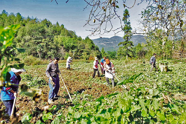 規(guī)?;募t薯種植為種植戶帶來了可觀的經(jīng)濟效益,也帶動了當(dāng)?shù)卮迕窬徒鼊?wù)工。庹德福的紅薯種植基地每到用工時節(jié),每天都有30多名村民參與勞作。從開墾土地到紅薯的種植、除草、施肥、采挖、運輸全過程都需要用工,許多村民參與其中,增加了家庭收入。今年庹德福的紅薯種植基地預(yù)計總勞務(wù)支付30萬元。