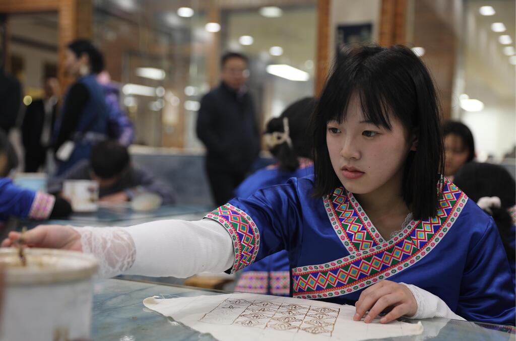 重慶彭水網(wǎng) (記者 李亞軍)近年來,我縣依托彭水獨(dú)有的旅游資源和歷史文化,將民族民間文化技藝傳承作為特色項(xiàng)目引入校園,在縣職教中心開設(shè)特色課程,聘請民間大師、非遺傳承人6名,建立大師工作室4個,牽頭成立了全國首家非物質(zhì)文化遺產(chǎn)傳承與保護(hù)產(chǎn)教聯(lián)盟,走出了一條具有民族地區(qū)獨(dú)有的職教發(fā)展之路。圖為近日縣職教中心蠟染室里,學(xué)生們正在制畫、拓印、點(diǎn)蠟、上色。
